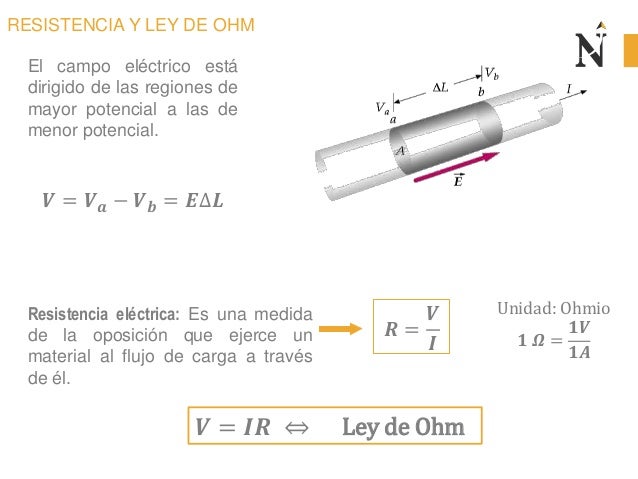 En 1827 Ohm dedujo una ley que expresa la proporcionalidad existente entre la diferencia de potencial V aplicada de la corriente I por ella producida. La constante de proporcionalidad es la resistencia R: